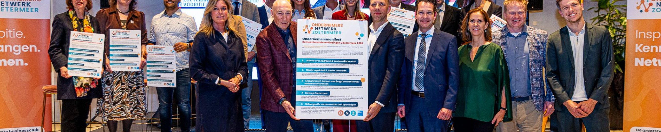 In nauwe samenwerking met de Gemeente Zoetermeer en VNO-NCW bood Ondernemers Netwerk Zoetermeer het lokale bedrijfsleven een podium om de lijsttrekkers kritisch aan de tand te voelen. Niemand minder dan Annemarie van Gaal leidde het debat met scherpe vragen en zorgde dat geen enkele politieke partij de dans ontsprong.